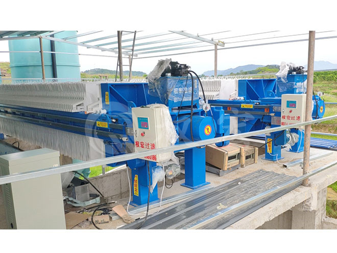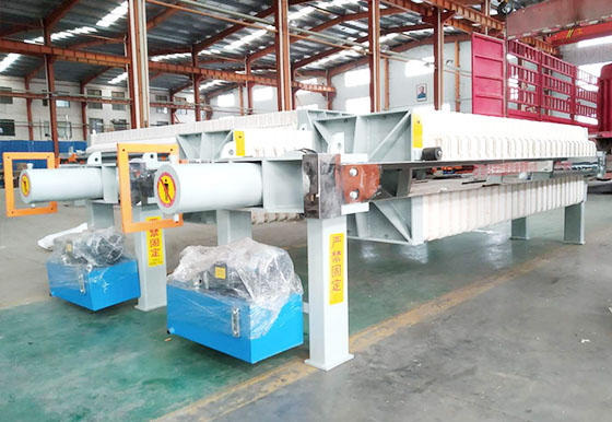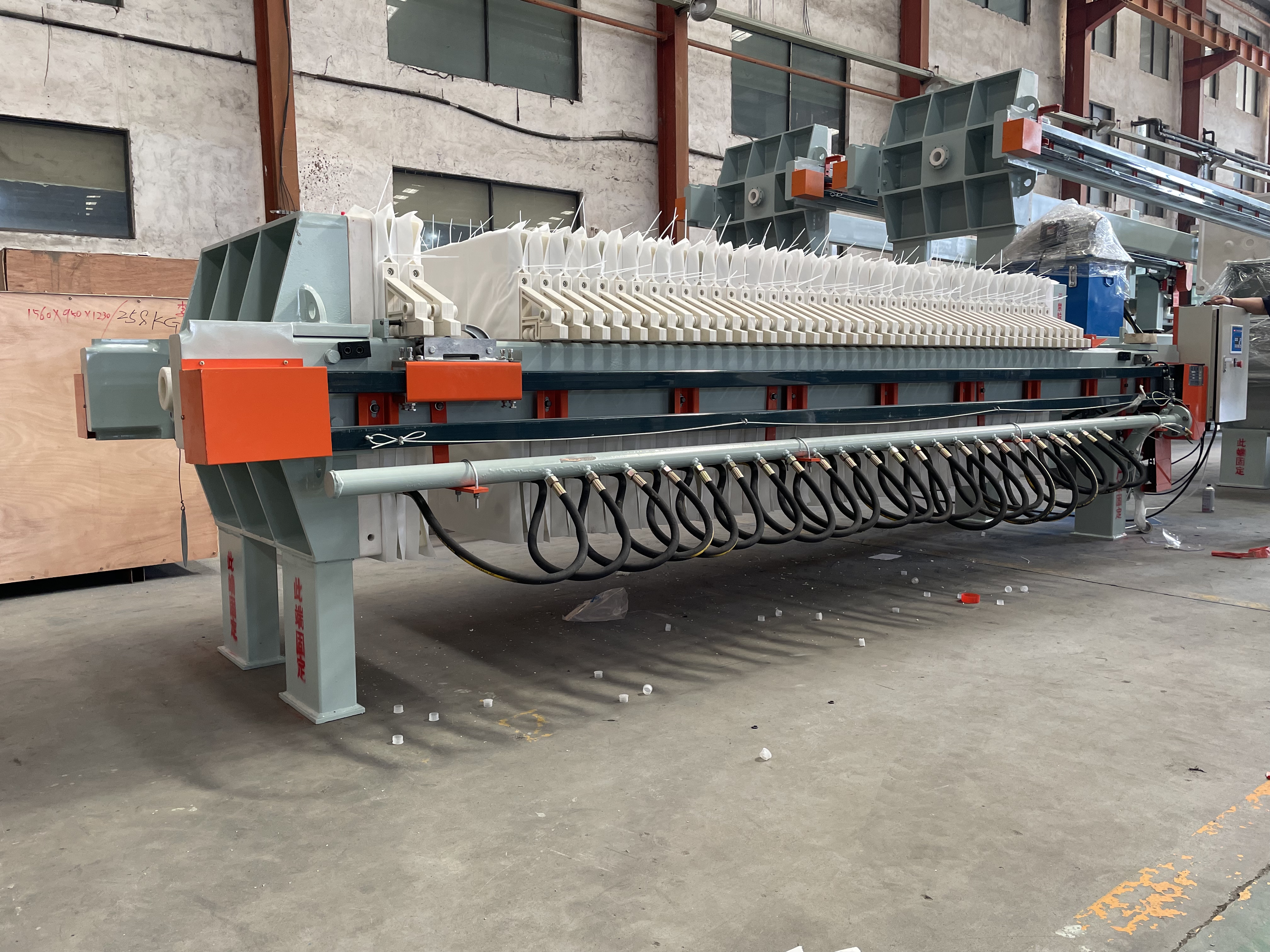 自動拉板壓濾機采用PLC控制,能對壓濾機進行各項操作(如濾板壓緊、集液板合并與開啟、拉開濾板),并留有遠程控制口,能遠程自動操作控制。 -