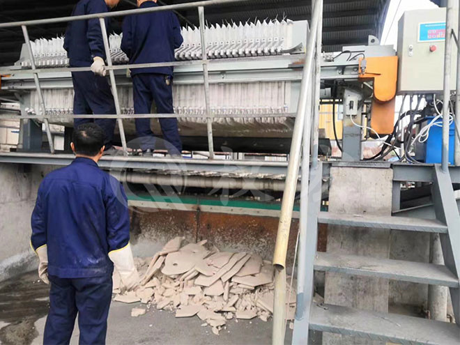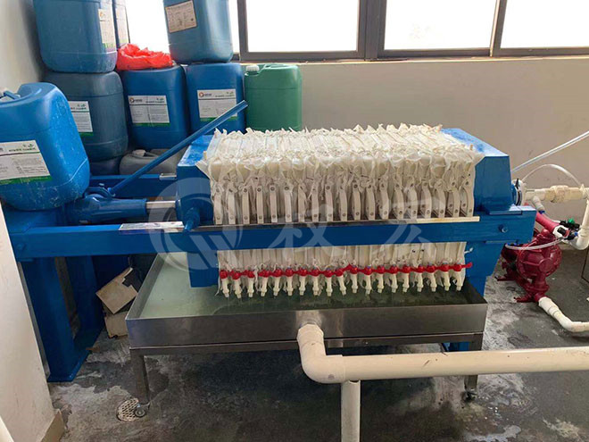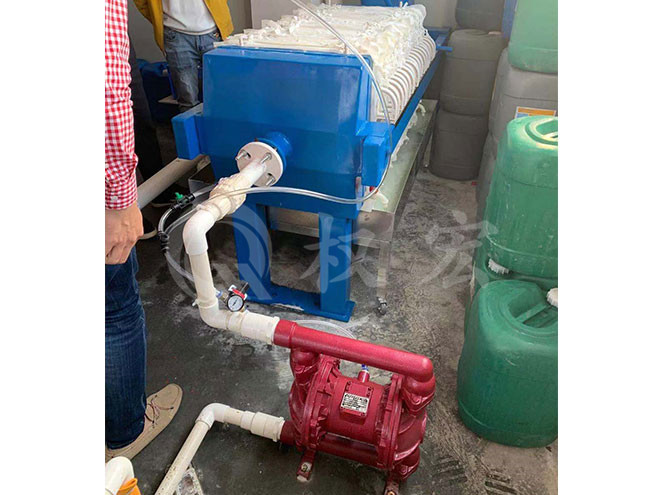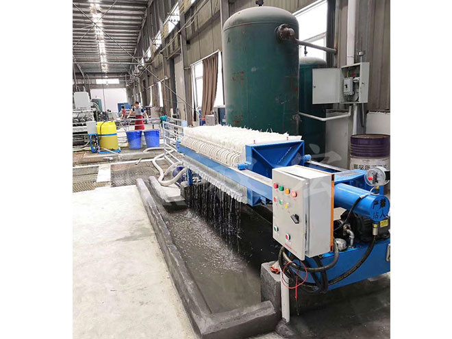 隔膜壓濾機由隔膜板和廂式濾板共同組成濾室,在輸料泵的壓力作用下將漿料輸入濾室,通過過濾介質(濾布)將漿料中的固體和液體分離,當漿料中的固體形成濾餅后,再向隔膜充入空氣或液體,隔膜板鼓脹實現對濾室內的固體的二次壓榨,以降低濾餅的含水率。隔膜壓濾機適合對于粘性物料的過濾及對含水率要求較高的用戶。 隔膜濾板采用增強聚丙烯模壓而成,隔膜與聚丙烯板鑲嵌在一起,堅固牢靠、不易脫落、使用壽命更長。 -